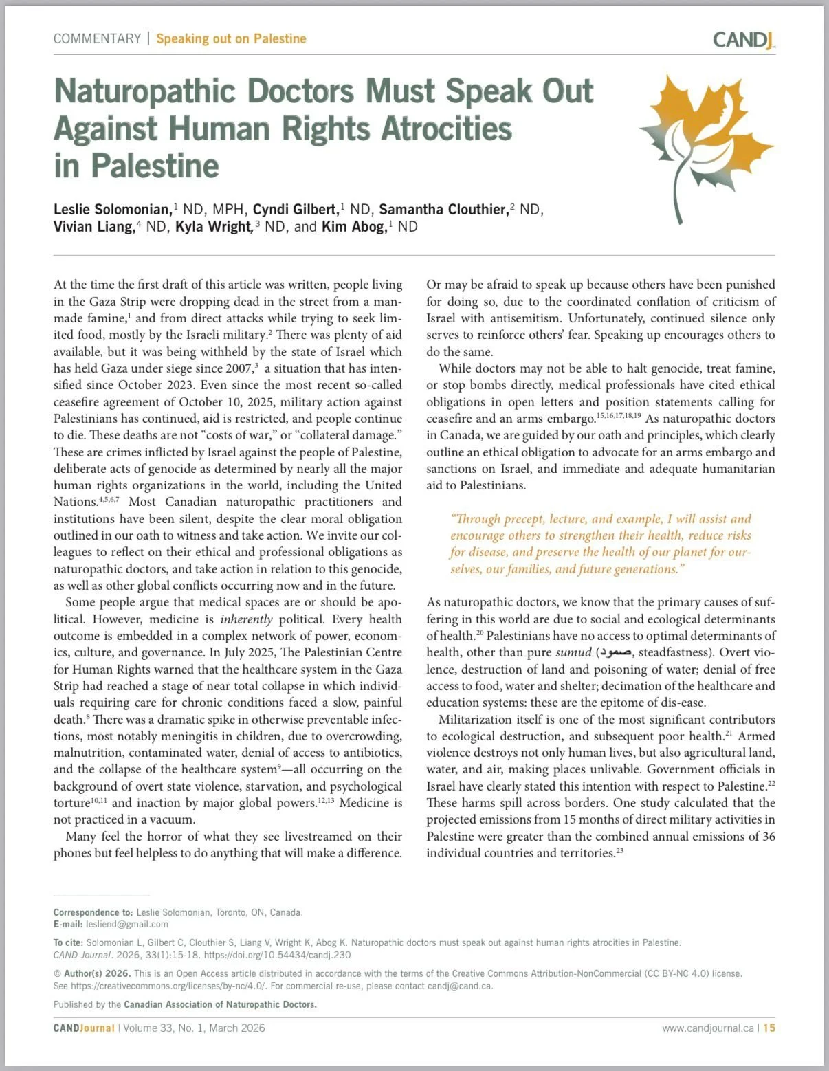 This is not politics as usual. A professional medical journal weaponized its platform against Jewish members, cited US-sanctioned antisemites as authorities, and recommended the BDS Movement as a professional resource — all while ignoring the worst massacre of Jews since the Holocaust. Jewish naturopathic doctors in Canada cannot simply leave CAND. They are trapped. We are not staying silent. Read the letter, add your name, and send it.